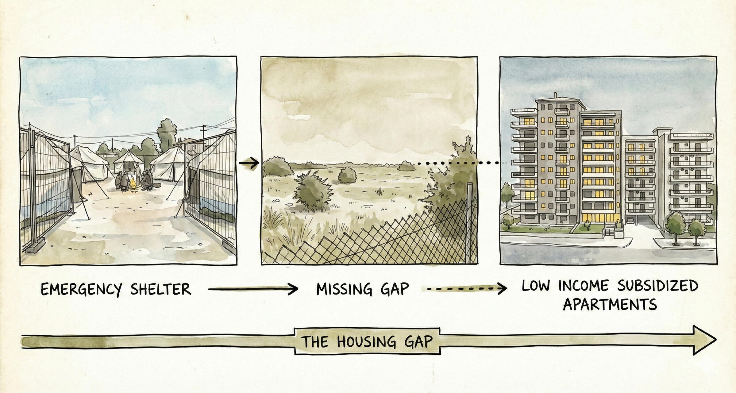 Our housing system is built around two extremes: emergency shelter and permanent housing.