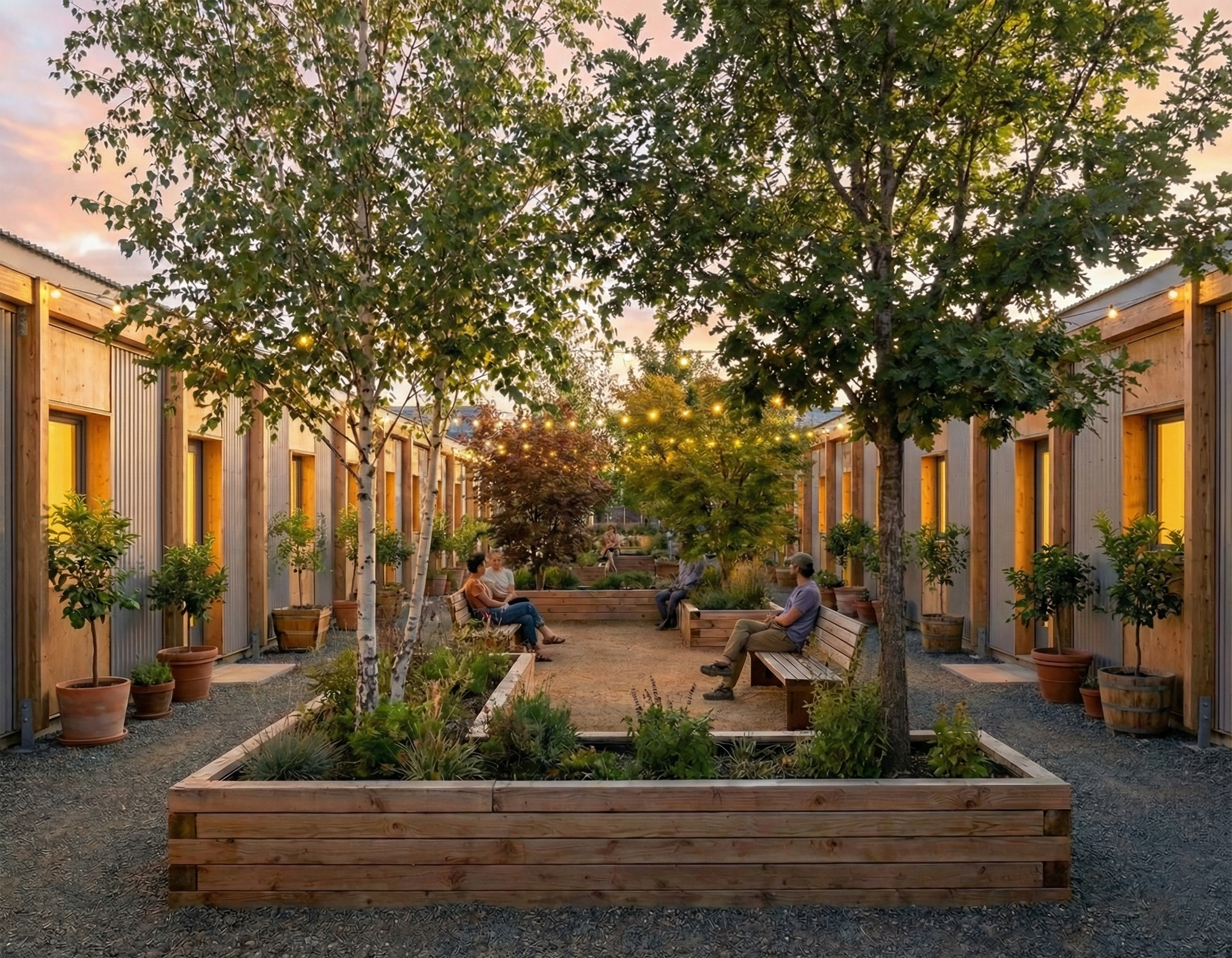The Pilot: The Garden ModelThe initial focus is a single deployment of The Garden Model—designed to be repeatable rather than exceptional.The Concept: High-Design Stability By starting with a rapid-deployment solution, the model can be tested and refined without excess risk. The Garden serves as a "bridge," utilizing high-quality, relocatable micro-cottages to activate underutilized land. This creates instant, dignified communities for workforce and transitional residents.A first pilot consists of a cluster of private dwellings arranged around shared green space ("Pocket Neighborhoods"). The emphasis is on speed, clarity, and measurable outcomes.12–24 Units: Factory-built, modular micro-cottages (300-400 sq. ft.).Agile Locations: Underutilized commercial, civic, or church-adjacent land.Mobility: Chassis or skid-mounted units allow for relocation if land use changes.Partnership: Operated by an experienced provider.The goal is not just to house people, but to establish a clear framework—proving it once, then repeating with discipline.